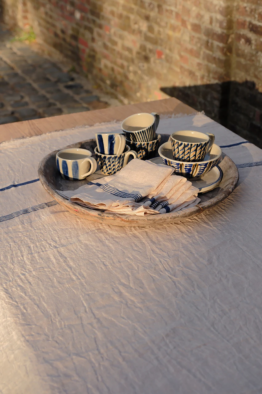 Blue Diamond Beauty is about pattern, texture and colour, and my hope is that these linen pieces will bring a little joy and happiness to gatherings and homes all around the world.