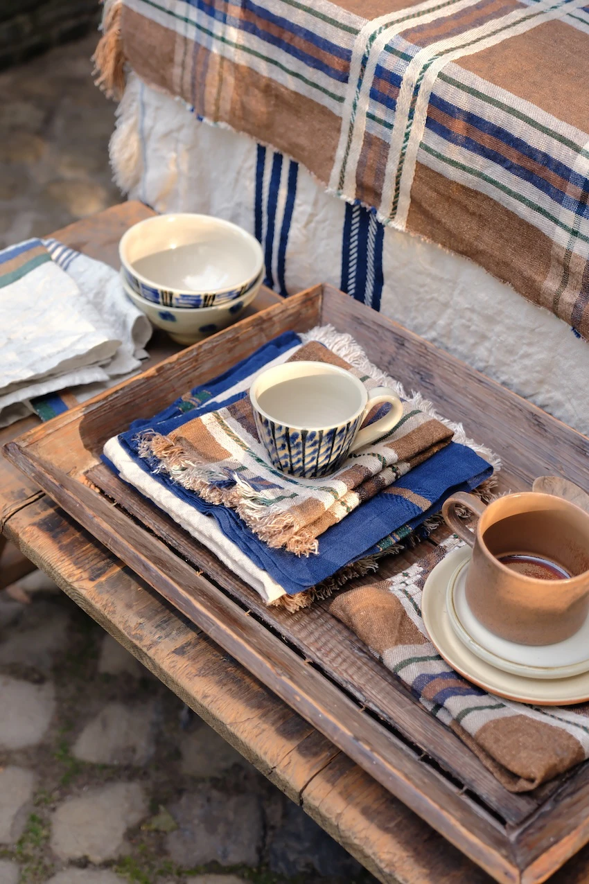 The collection is a study in pattern, texture and colour, created with the hope of bringing a sense of joy and quiet beauty to gatherings and homes around the world.